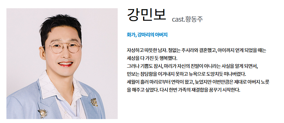 | 황동주 | 강민보 | 유명 화가, 마리의 법적 아빠 후보 2 |