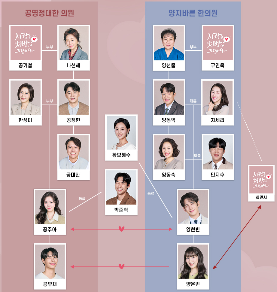 사랑을 처방해 드립니다 인물관계도는 공씨 집안과 양씨 집안의 대립 구도를 중심으로 펼쳐집니다.